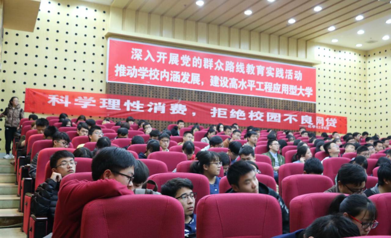 2017年3月30日晚7点,化学化工公司于图书馆二报告厅成功举办了“抵制不良校园贷”主题讲座。其中,化学化工公司学办主任吴菲、学办老师李娥君出席了本次讲座。化学化工公司大一、大二以及大三的部分员工代表到场聆听。公司特邀保卫处陈景轩老师担任本次讲座的主讲人。