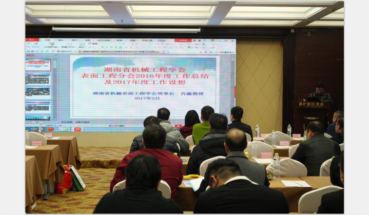 湖南省机械工程学会表面工程分会2016年度年会暨表面工程清洁生产技术交流会于2017年2月18日在长沙市湘府国际酒店举行,本次大会由理事长单位伟德体育官方网站化学化工公司和秘书长单位湘潭科立智能装备有限公司主办,湘潭科立智能装备有限公司承办,会议得到了扬州松泉环保科技有限公司和湖南德莱恩新材料科技有限公司友情赞助,为与会代表提供了礼品,来自湖南省机械工程学会领导刘锦文和李慰红、湖南省环保产业协会领导杨良、湖南省机械工程学会表面工程分会会员单位和省内外表面工程企业50余家单位的专家和同仁80余名代表参加了此次会议。