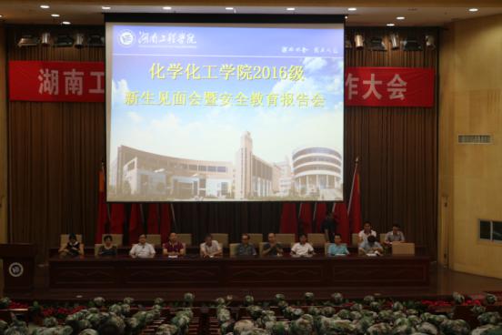 2016年9月18日上午8点20,化学化工公司于图书馆一报告厅召开了新生见面会暨安全教育报告会议。化学化工公司经理邓纪勇,副经理张何,陈建芳,党总支书记胡爱钦,党总支副书记张建国,各教研室主任,学办主任以及学办全体老师参与了此次会议。
