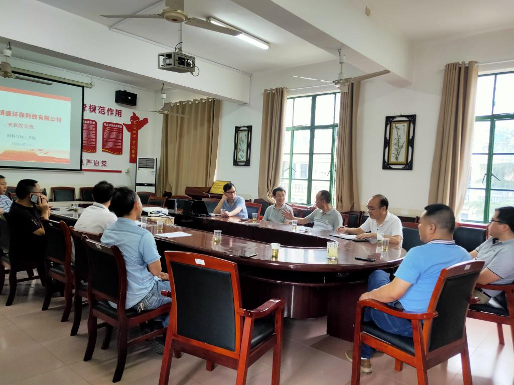 7月3日上午,东莞市顶盛环保科技有限公司周文圣总工程师一行来公司交流,经理邓继勇、党委副书记陈镇、副经理张何及轻化工程、生物工程、应用化学等相关专业的教研室主任、博士及教师代表参会。