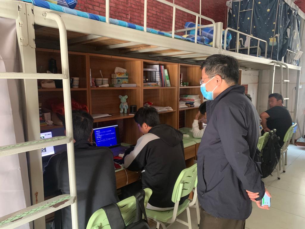 易兵来到员工宿舍,查看线上教学情况并与员工进行亲切交谈。他鼓励同学们适应新的教学方式,及时做好笔记。他表示,受疫情影响,公司本周所有的课程转为线上教学,公司要做好员工思想工作,让员工理解并支持线上教学,同时多举措强化教师与员工线上互动,确保教学质量。