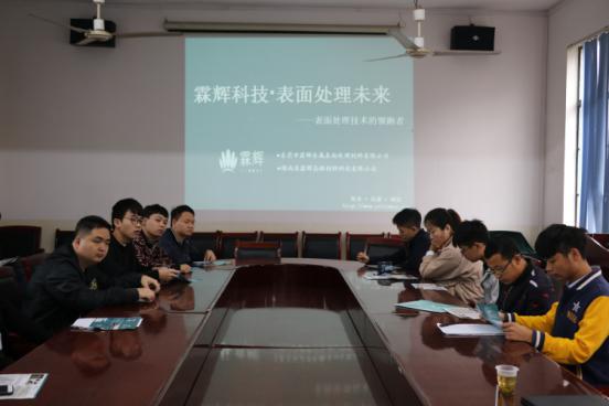 会议初始,何少波向在场的同学们介绍了霖辉公司大概的发展历程,并特别提出霖辉公司在株洲的分公司已完成了第一期的建设,不久之后就可以完工。紧接着何总监又向同学们介绍了公司的高层领导和与其有合作关系的精英人才,以此吸引在场的同学。随后,何总监讲到了霖辉公司相较于其他同类型公司所具备的六大优势,并特别提到公司现在正在开发一中名为真空镀的新型电镀方式,相比于传统的电镀方式真空度可以做到无污染,十分具有发展前景。其次,何总监又介绍了与霖辉公司有过合作的名牌公司,这进一步的引起了同学们的兴趣。在后来的提问阶段,何总监就同学们提出的关于工资、工作地点、公司福利等问题作出细致的解答,并强调到在霖辉公司工作最主要的是要看个人的能力,能力越强在霖辉也就越受欢迎。最后,对霖辉公司感兴趣的同学投递了自己的简历。
