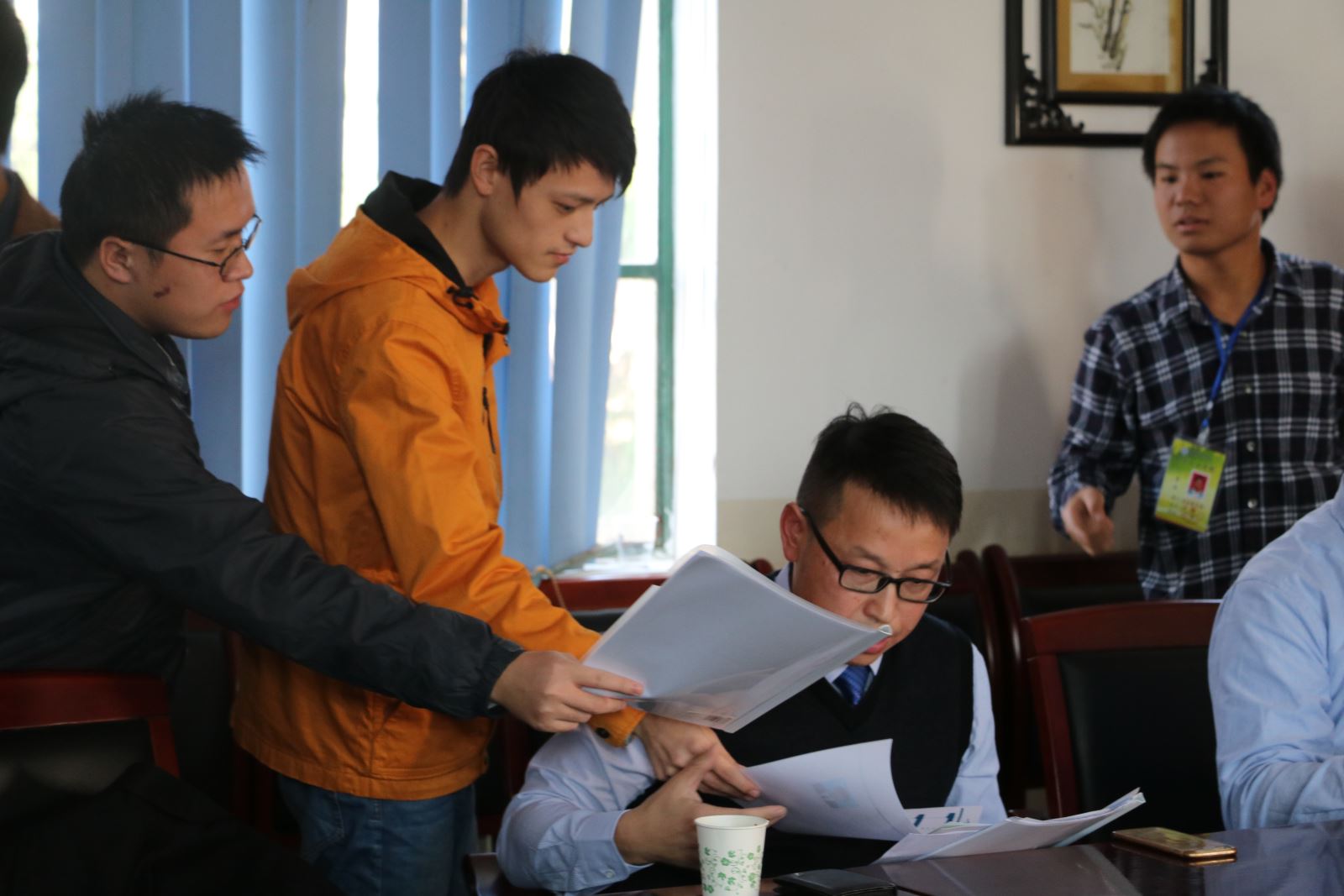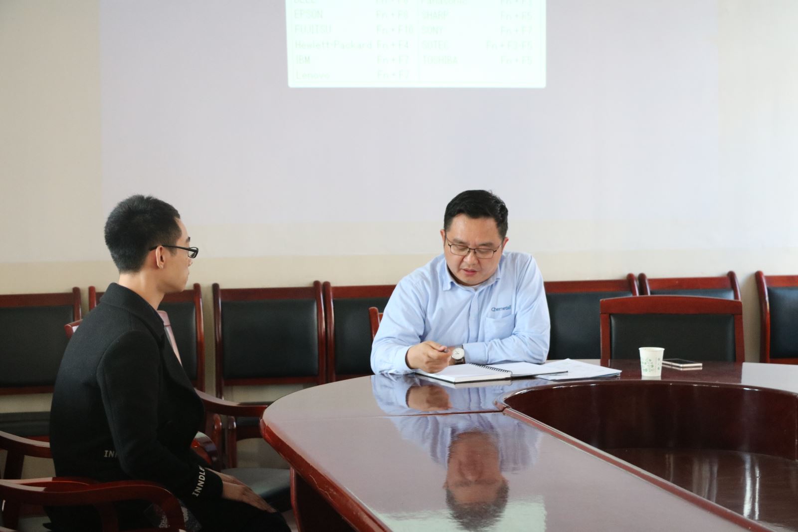 会议初期,张海云与周捷分别做了自我介绍,同时也谈到他们是生意上的合作伙伴。随后,张海云分别从公司的发展史、发展背景及发展前景向同学们做了详细的介绍。他表明该公司是有120年历史的老牌企业,在全国很多地方都设有分公司,因此应聘者可以自行选择工作地点,他还表明此次的招聘对象是有销售经验的同学。随后,周捷也就他们的公司向同学们做了详细的介绍,但与张海云公司不同的是,周捷的公司刚创建不久,目前正处于发展阶段,因此此次招聘对象是有志向研究金属表面处理的技术人员。会议最后,同学们分别向有兴趣的公司投递了简历并进行了现场面试,气氛十分热烈。
