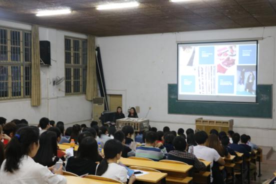 会议开始,主讲人朱畑畑对“超盈”的历史、公司的相关优惠政策、服装的发展趋势和“超盈”在国际舞台上所取得的成就等方面进行了详细的讲解,随后她向同学们介绍了“超盈”公司的相关工作项目以及公司发展前景,这让同学们对该公司又有了进一步的了解。同时,朱畑畑还勉励同学们不应局限于自己的专业,应多学习专业以外的知识,拓展自己的视野。在最后的互动环节中,同学们就自己在该公司的就业岗位与薪资待遇提出了一些相关的问题,并都得到了满意的回答,有意向的同学在会议结束后,便与该公司负责人有了更进一步的交流。招聘现场十分热闹,同学们与负责人的交流也十分频繁。