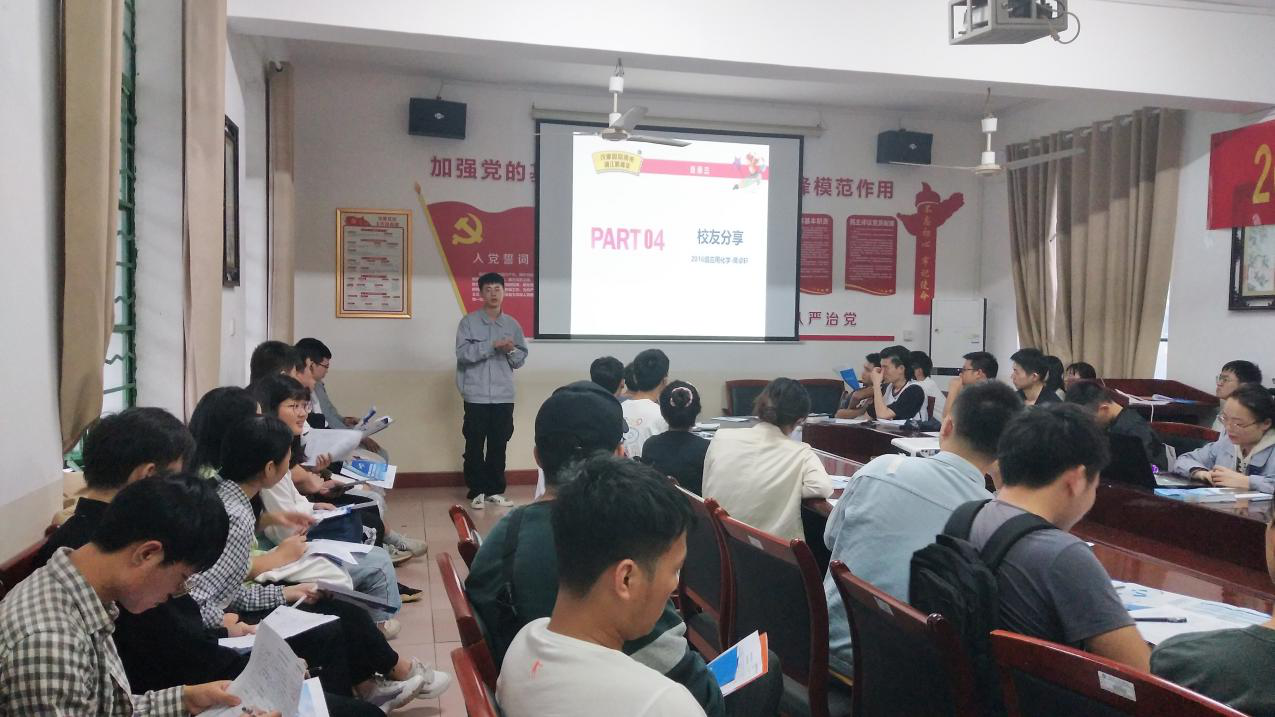 9月28日,公司在四教306召开了就业经验分享会。主讲人为湘江涂料有限公司应用化学16级学长蒋卓轩。应用化学、化学工程与工艺专业40余名师生参加。