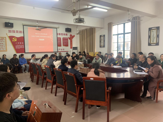 李艳红领学了《关于做好中国共产党伟德体育官方网站第四次代表大会代表选举工作的通知》及有关纪律规定。随后,大会通过了监票人建议名单、计票人名单,采用无记名投票、差额选举的方式进行选举,与会人员认真填写选票,投上了自己神圣而庄严的一票。通过计票、统票,选举产生甘辉、李谷才、李艳红、张何、张儒、陈镇、胡倩、胡爱钦、柳芊、黄赛金等10人为参加第四届党代表大会的党员代表。