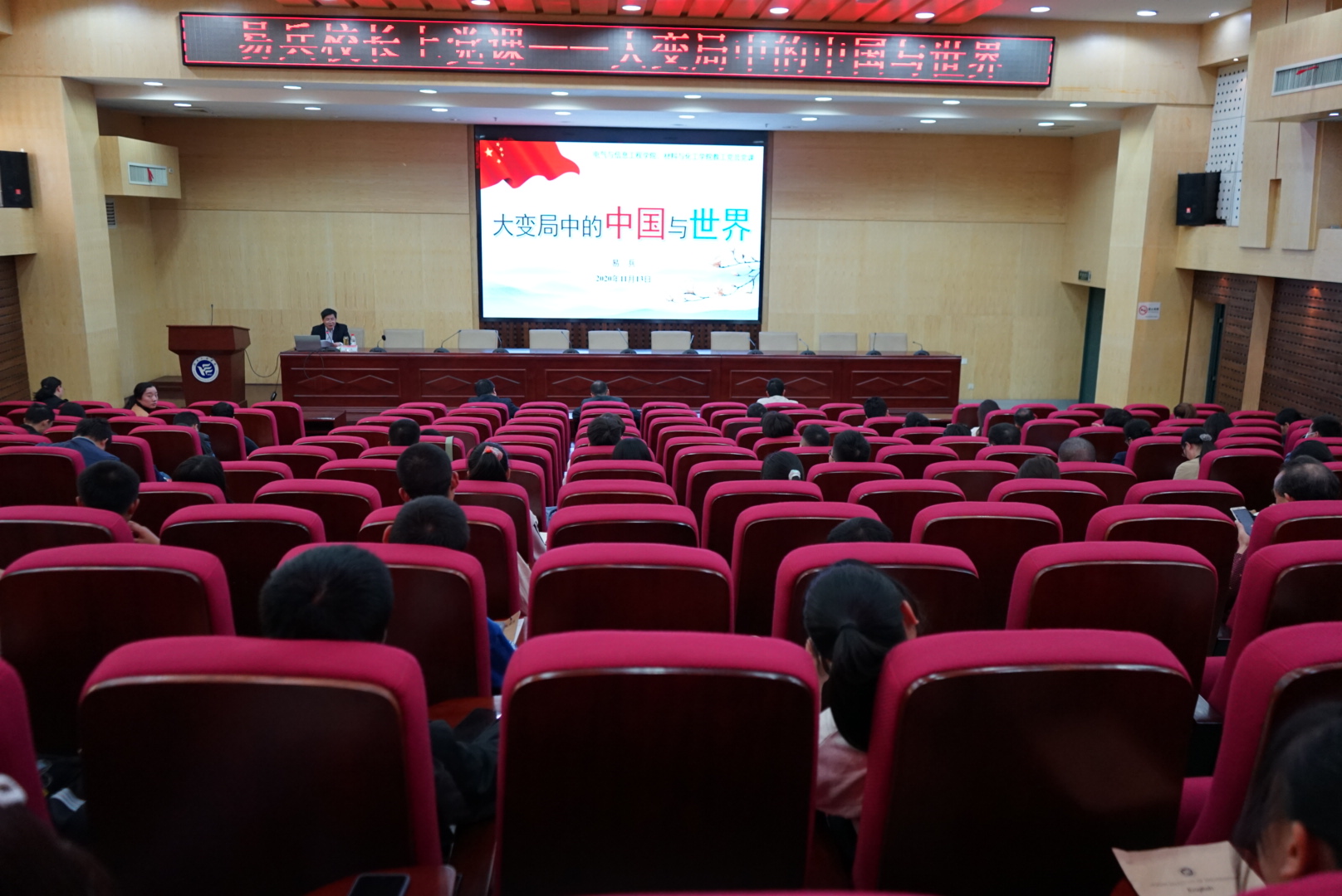 此次党课的主题是“大变局中的中国与世界”。如何把握“百年未有之大变局的内涵”、“大变局中中国有哪些机遇和挑战”、“中国在这个大变局中扮演什么角色”,易兵围绕这些问题开展了精彩的阐述。