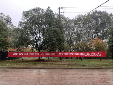 公司高度重视廉政文化建设,在四教旁、红楼前挂上“清正为师当师表 廉洁从教筑师魂”、“廉洁自律为人师表 求真务实教书育人”等标语,积极营造风清气正的校园氛围。