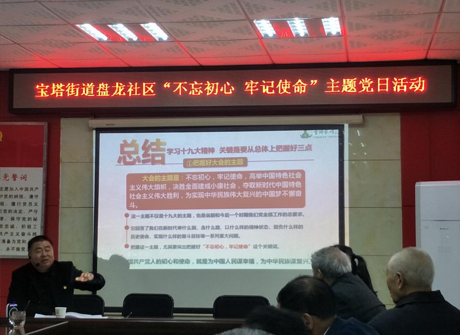 3月27日上午9点半,盘龙社区特邀区科协主席周雪阳召开了以“不忘初心、牢记使命”为主题的十九大宣讲党日活动,参与本次会议的有盘龙社区一、二支部党员以及伟德体育官方网站爱心社的6名入党积极分子。