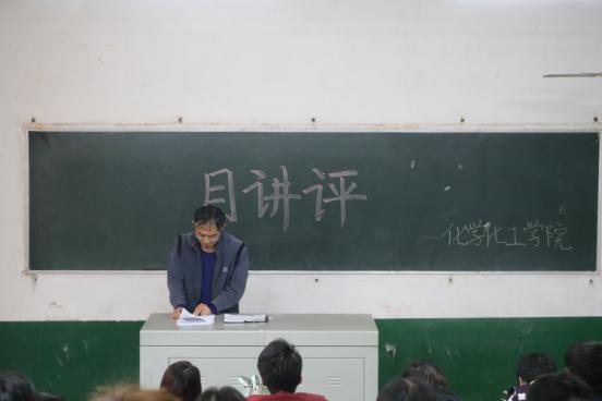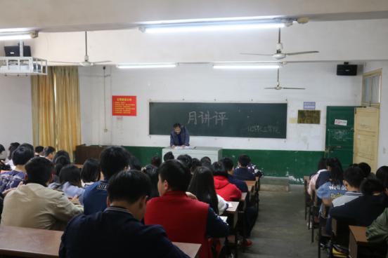 2017年4月26日下午4点,化学化工公司于四教102开展月讲评活动,党总支副书记张建国担任此次活动的主讲,学办老师易苏、李娥君以及全院干部参加了本次讲评活动。