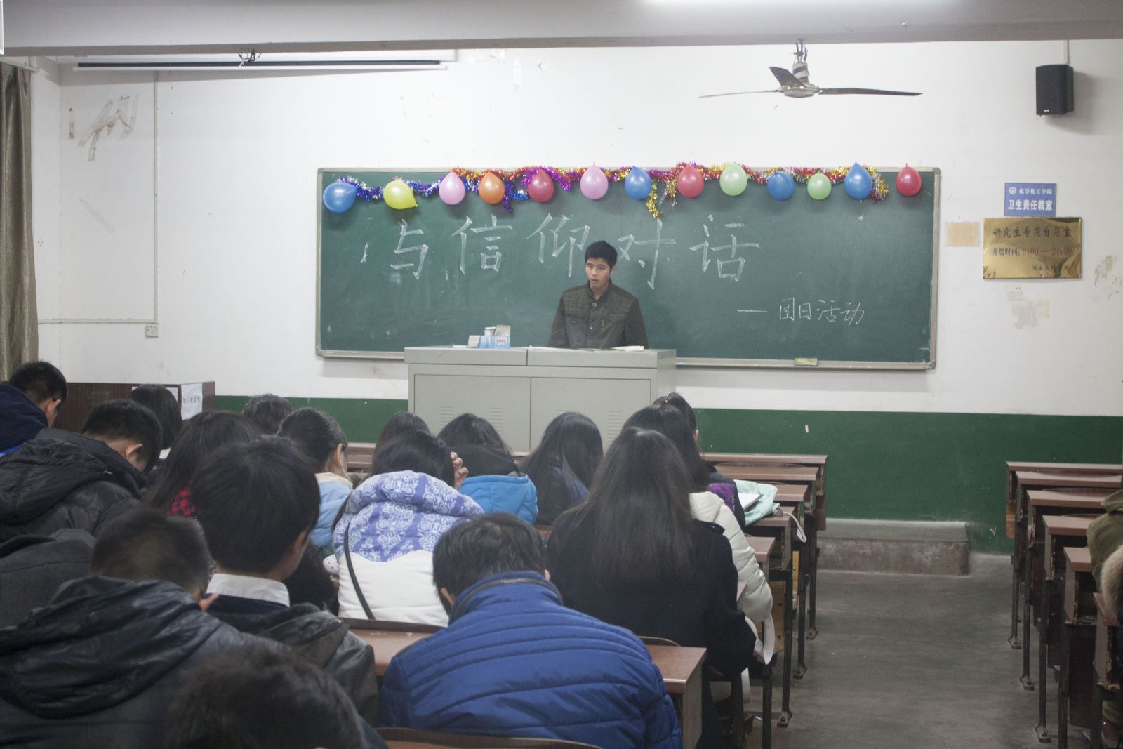 各班希望通过主题班会的形式,引导老员工了解马克思主义,引导青年团员树立跟党走的中国特色社会主义道路的理想信念,逐步坚定马克思主义信仰。首先,班委组织各班同学依次就“信仰是什么?”“如何坚定自己的信仰?”“怎样做更接近自己的信仰?”三个问题开展讨论,引导同学思考。接下来,各班组织开展形式各异的活动映衬主题。化工1501班与高分子1401班以讲述信仰的方式进行,其中,一位同学说到每个人在自己的兴趣爱好中都有一份独一无二的信仰,不会因他人的看法转变,意味深长的话得到了同学们的肯定。轻化1501班与轻化1502班通过分组学习并授课的方式开展,让同学们在搜集资料与上台授课的过程中自然而然地领悟活动主旨。授课过程中台上台下互动频繁,在场同学积极回答关于信仰的话题。最后,主持人组织观看名为《信仰》的主题纪录片,深化主题,使同学们留下了深刻的印象。