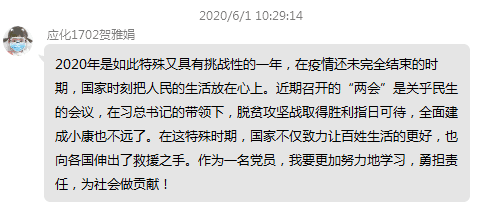 6月1日,伟德体育官方网站三个员工党支部开展了线上学习今年全国“两会”精神主题党日活动。会上,全体党员集中学习了《2020年两会特别报道:习近平的两会时间》、《政府工作报告》、微视频《人民至上》、2020年全国两会大型融媒体专题:《风雨无阻 奋勇向前》等内容,每位党员认真学习领悟,对重点内容进行摘抄、分享,实现线上线下同频共振,把思想和行动统一到习近平总书记重要指示和“两会”精神上来。