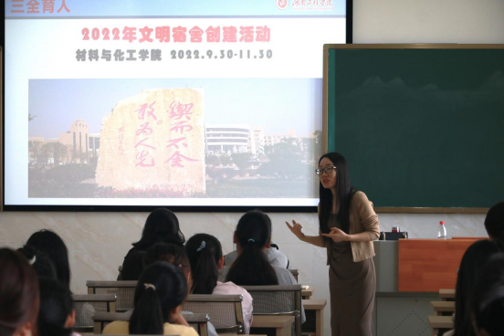 为有效推进文明寝室创建,营造良好的宿舍生活环境,10月25日中午,伟德体育官方网站在新化工楼602教室开展2022年文明寝室创建活动暨文明礼仪知识讲座,活动由公司辅导员李娥君主持,2020-2022级全体寝室长参加。