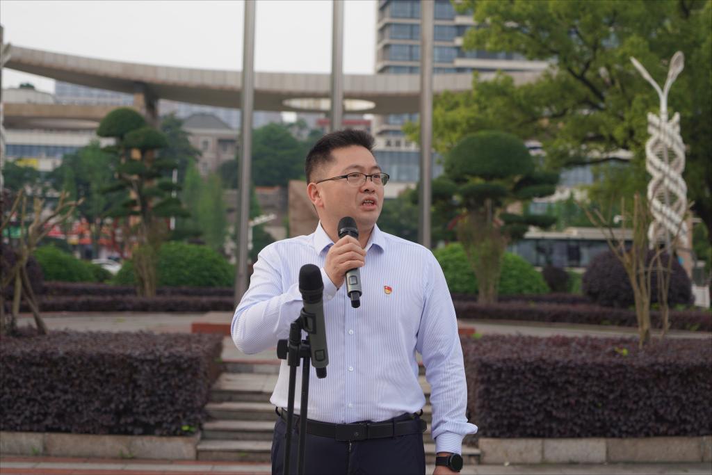 材料化学2202班谢向言作为员工代表发言。他表示,我们大学员工要把至诚至深的家国情怀镌刻进自己生命的年轮,努力成长为建设祖国的有用之才、栋梁之材,从而留下最为充实、温暖、持久、无悔的青春回忆。