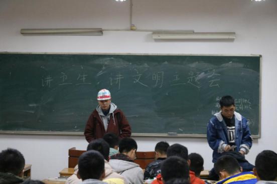 为进一步加强公司员工思想道德建设,净化校园环境,建设文明校园。11月19日,化学化工公司组织大一大二各班于红楼开展了以“讲文明、树新风、创美丽新校园”为主题、以“告别行动垃圾、思想垃圾”为主旨的班会活动。