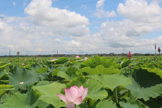 在乡镇政府的带领下,河口镇新建了特色农产品基地2个,其中湘莲基地1380亩,西瓜基地300亩,还引进了1家农业龙头企业,产值过1000万元。公司志愿者队在镇人大副主席张石强的引领下,志愿队寻访了湘莲特色基地。在前往特色基地的途中,均能看到道路两旁有出售本地西瓜的摊点。据了解,本地西瓜销量极高旺季时可达每日万斤,西瓜种植极大的解决了农户解生计问题。随后,志愿队来到了千亩莲田的所在地。正值盛夏,莲花盛开,不少人因湘莲的美景慕名至此。据了解,湘莲特色种植基地是当地经济的核心,它不仅推动了河口镇的旅游业发展,还引申出了诸多湘莲相关产业,极大的带动了当地的经济发展。