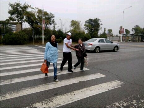 为营造安全出行环境,维护校园出行安全。11月22日上午8点爱心社组织志愿者在新校区校门口开展马路安全劝导活动,带领需要过马路的老人、小孩与行动不便的人安全过马路。爱心社志愿者先期进行抽样调查,发现新校区校门口交通安全隐患颇多,路宽车多对过马路的行人造成许多不便。为此,爱心社志愿者站在马路两旁服务过往行人。在寒冷的清晨为过往的行人带来丝丝温暖。