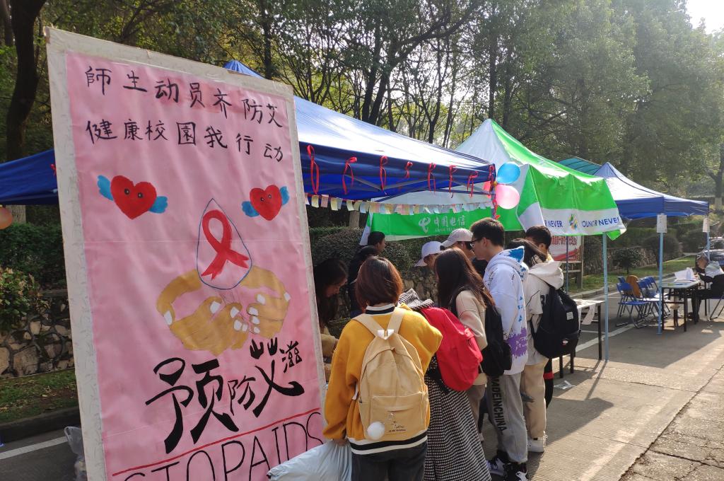 活动期间,同学们在便利贴上写了对艾滋病病人的鼓励和祝愿,表达对艾滋病病人的关心。在活动现场,工作人员向同学们讲解防艾知识,进行了互动游戏,完成游戏的同学都获得了小礼品。