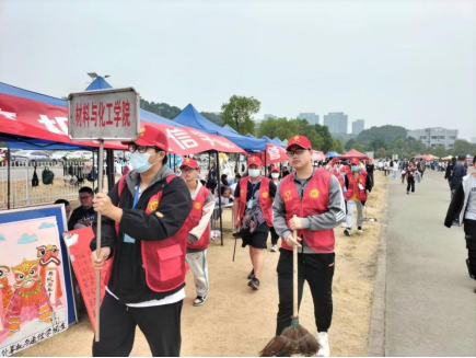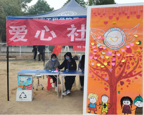 运动场上,当运动员们接力交棒时,能看见有爱心社的成员记录精彩;当运动员们冲向终点时,能发现有爱心社的成员在加油助威;当人们寻求帮助时,总会有爱心社的成员在站点等候。每过一段时间便能发现有爱心社的成员在循环清扫。爱心社各个部门还制作了各种有趣且美观的垃圾桶:矗立不倒的机器人、憨厚可爱的大熊猫、生态环境保护屋、半自动开盖的小怪兽…他们保护了竞技场上的环境卫生,让鲜红的跑道上只留下运动员们拼搏的汗水!