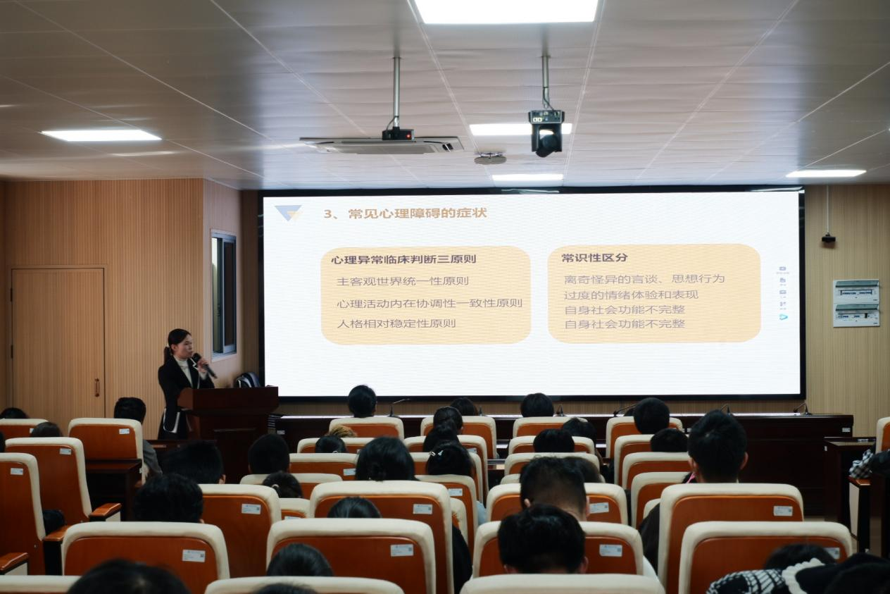 黄玉娟从心理健康工作的重要性、常见心理危机识别、干预方法和手段三个要点出发,培训参会人员应该如何发现有心理状况的同学,及时将危机及时上报相关老师进行干预,并回答了现场几位同学提出的心理健康方面的问题,同学们都表示对心理健康工作有了更清晰的认识,现场气氛十分活跃。