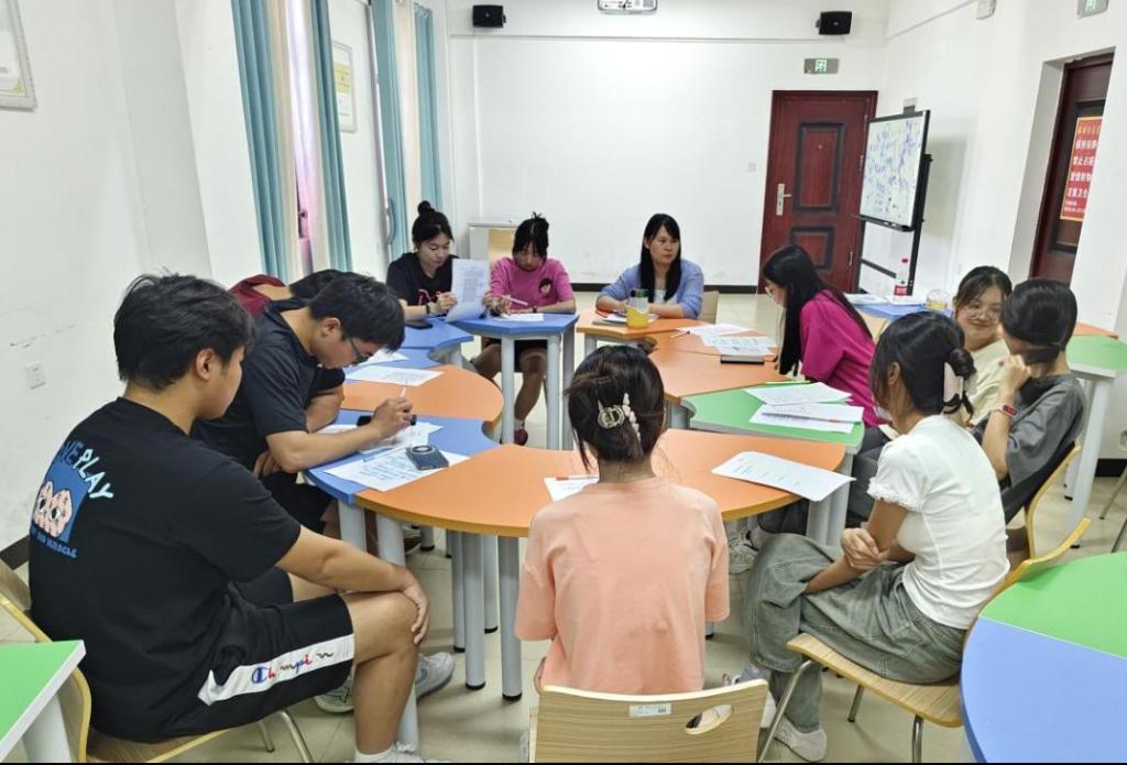 活动通过"信息接龙"破冰游戏迅速活跃现场氛围,"鸡蛋变凤凰"趣味竞技有效提升团队凝聚力。在核心环节中,黄老师创新运用"生涯彩虹图"理论帮助员工认知人生角色定位,通过"心境识别"活动引导成员开展自我画像与互评交流。结合霍兰德职业兴趣理论制定个人职业目标及在校行动计划,黄老师逐一给予指导。最后,黄老师邀请大家围成一个大圈,参与者依次用一个词或一句话表达了参与本次团体辅导活动的感受和收获。