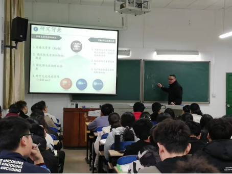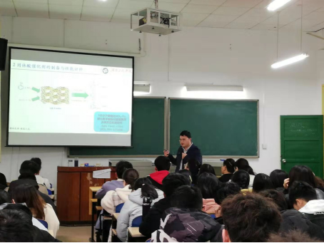 张伟杰博士报告主题是共轭微孔聚合物光催化有机反应。就目前传统光催化剂存在的科学问题,他结合自身的科研经历和近期研究成果,对共轭微孔聚合物设计与合成,光催化性能以及光催化的重要性和现实意义进行了深入阐述,加深了与会师生对光催化的理解,报告简洁生动又富有深度。
