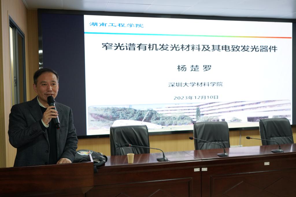 12月11日下午,国家杰出青年基金获得者、全国百篇优秀博士学位论文指导老师、深圳大学材料公司教授杨楚罗受邀来校,在材化楼A301作题为“窄光谱有机发光材料及其电致发光器件”专题学术讲座,伟德体育官方网站经理邓继勇主持。