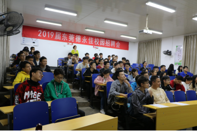 招聘会开始,公司周穗涛主任给同学们放了一段宣传视频,让大家初步了解德永佳有限公司。招聘会过程中,陈总跟大家一起讨论问题,气氛非常活跃。陈经理介绍了现在未来纺织行业的发展,同学们给以热烈的掌声。德永佳公司位于粤港澳大湾区战略中心地带,拥有世界一流的生产设备。公司多次获得“广东省服装产业转型升级龙头企业”、“广东省环保诚信企业”等荣誉称号,获得国家专利局授权几十项发明和实用新型专利。陈总介绍了公司需要招聘的各方面人才,接着谈到了公司的福利,文化生活也是丰富多彩,花样百出。最后,陈接照总经理耐心地解答了同学们的问题,并对有意向加入该公司的同学进行了初步面试,招聘宣讲会圆满结束。