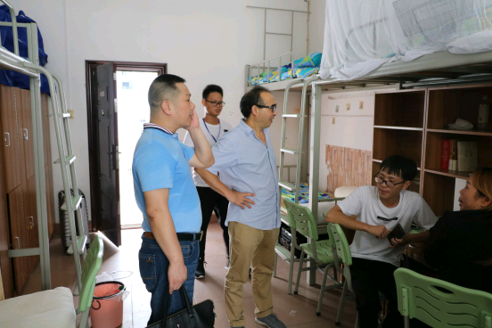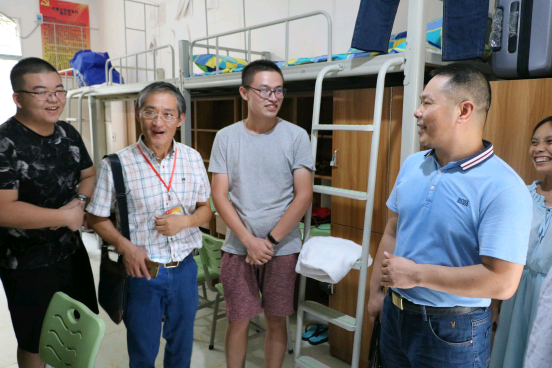 来到学海10栋、11栋,看到新生们将寝室整理得有条不紊,公司领导一行给予了肯定。公司领导关切询问新生的入学情况、家庭情况,“同学们来自哪儿?”“在这有什么不习惯的地方吗?”院领导与同学们亲切交流着,嘱咐同学们要注意安全,并勉励新生们要努力读书,度过一个有意义的大学时光。见到新生的家长们时,公司领导详细地向他们介绍了公司的情况,并向他们保证,公司一定会培养好这些新生,让他们成为对社会有用的人才,家长们也纷纷表示,对公司十分放心,将会全力支持公司工作。