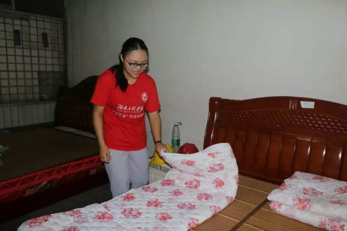 七月十三日早上八点四十,化学化工公司青年志愿团队在团队指导老师易苏的带领下开启了暑期“三下乡”社会实践活动的第三天历程。天公作美,在连续两天的炎热天气过后,迎来了一个大阴天。这对我们的志愿者来说是可遇而不可求的。今天的志愿活动相比前两天可要轻松不少,将院内卫生打扫干净后,今天便是整理内务。虽说整理内务是一件简单事,但在一个刚搬迁的敬老院内整理内务可是一个细活,我们的志愿者们无论男女都在仔细认真的为老人们摆放房内东西,有的还在询问老人们该如何摆置才能让他们生活的更舒适,看起来更雅致。而我们慈祥可爱的老人们更是十分欢喜的与志愿者们讨论起屋内摆设来了,志愿者们也是很热情大方地同老人们开着玩笑,逗得老人们合不拢嘴。整个敬老院内一片欢声笑语,场面也十分温馨有爱。临近中午,天色已是一片灰暗,不久便是倾盆大雨,但这并没有影响我们青年志愿团队的工作热情,他们依旧在为老人们积极服务,院内萦绕着爱的暖流,在志愿者有爱的帮助下,老人们脸上洋溢着幸福的笑容。志愿活动虽然辛苦,但其中的乐趣却是妙不可言的。志愿者们在愉快中结束了今天的志愿活动。