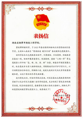 (共青团南岳区委员会为谭祥铭和旷竹鑫颁发的表扬信)