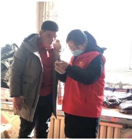 材料化学2002班学习委员苏雨佳同学主动向村委请战,加入到防疫工作的第一线,尽自己的最大力量,为疫情防控工作出贡献。她说,“工作过程中,难免有人不理解,不配合;有时工作中也感到委屈,但我们仍然坚持耐心地解释,确保每一个人都注册了健康码,为守护家乡的平安尽献了一份责任与力量”。