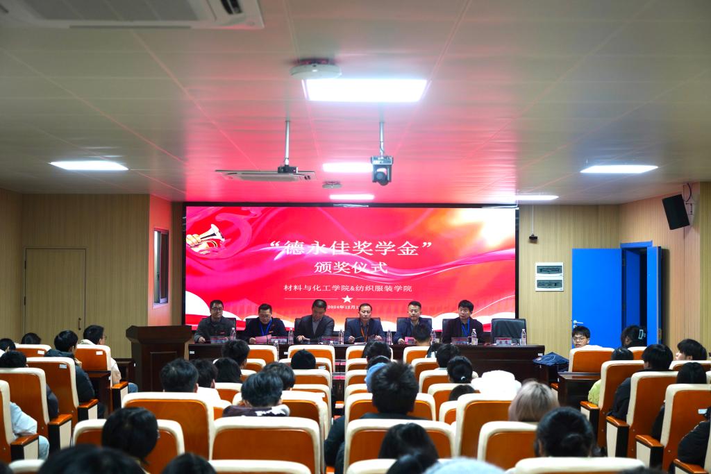 12月12日下午,公司德永佳奖学金颁奖典礼在材化楼A301举行。公司党委委员、副董事长魏克湘,东莞德永佳纺织制衣有限公司人力资源部总监傅桂君、薪酬绩效科主任郑黎,员工联络中心主任张宏、纺织服装公司党委书记李爱国、党委副书记何斌、公司党委书记徐粤宇、副经理张儒、党委副书记罗荃、获奖受助员工及员工代表参加。仪式由徐粤宇主持。