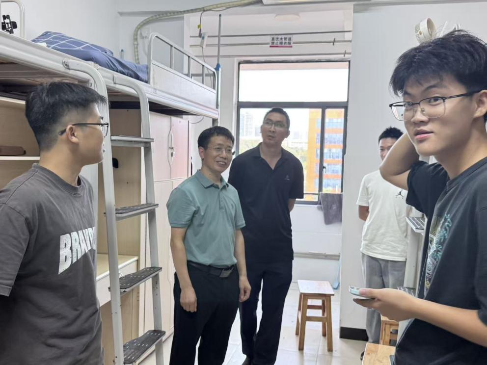 走访过程中,院领导逐一走进新生宿舍,亲切地与新生及家长握手问候,详细询问家庭情况、专业认知、住宿适应及生活需求。“从家乡到这里还习惯吗?”“宿舍设施有没有问题需要解决?”一句句关切的话语让初入校园的新生倍感温暖。 同时叮嘱新生要尽快转变角色,适应集体生活,主动融入校园;鼓励大家保持积极心态,遇到困难及时向辅导员、班主任反馈。此外,要注意宿舍安全与卫生,提醒同学们遵守公寓管理规定,共同营造安全、和谐、温馨的生活环境。