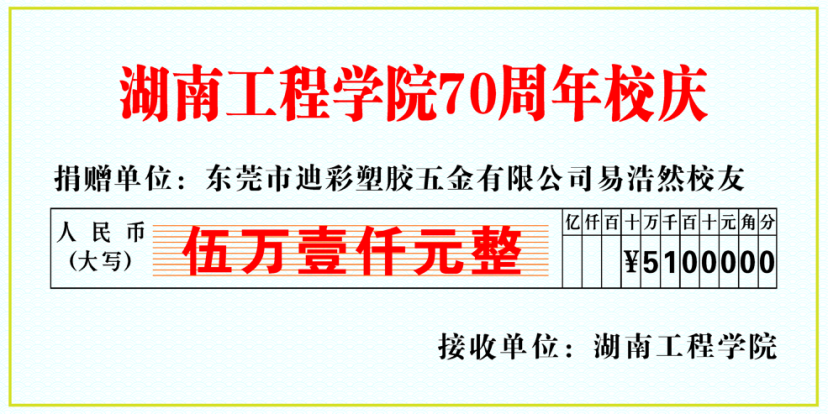 近日,东莞市迪彩塑胶五金有限公司总经理、公司杰出员工、电机电器94122班易浩然向公司定向捐赠,在伟德体育官方网站设立“浩然助学金”,用于资助和鼓励材化学子毕业后立足专业、投身行业、实干兴邦。捐款已于8月27日汇入公司设立的校庆专用帐户。