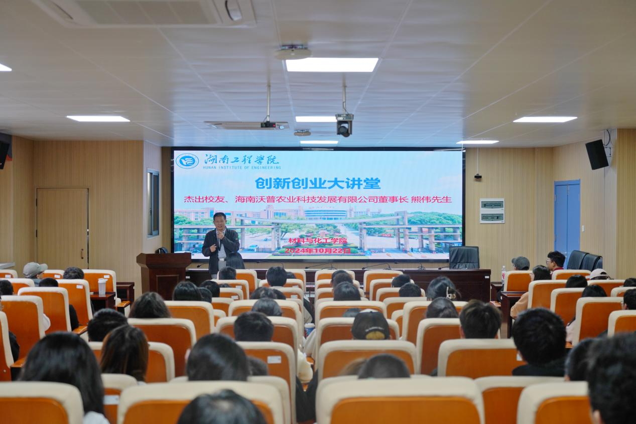 随后,熊伟在材化楼A301报告厅为百余名师生分享创业故事。他结合求学、工作与创业的经历,向在场的同学们回顾了自己人生历经三次波折与命运转折的坎坷崎岖之路,讲述了他从一名中专生逆袭成为在国内外杂志发表600多篇学术论文的纺织行业专家和成功经营多家公司创造收益传奇的优秀企业家的励志故事。