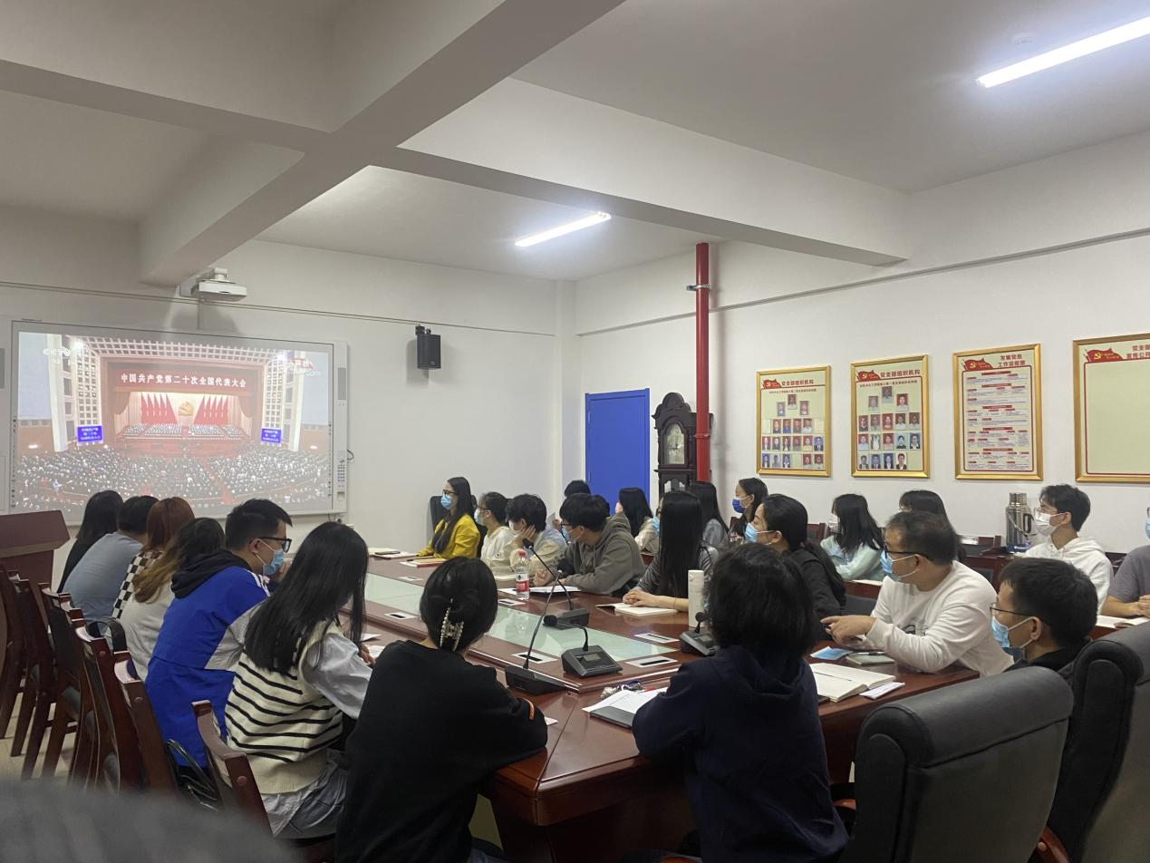 10月16日上午十时,伟德体育官方网站在化工楼A栋304室和602室组织集中收看党的二十大开幕会,公司党委理论学习中心组成员、教师代表、员工代表、全体在校员工党员参加。